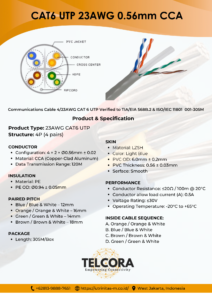 Tersedia juga varian TELCORA CAT6 UTP BC Cable (Bare Copper) untuk performa lebih tinggi dan hasil uji Pass Fluke